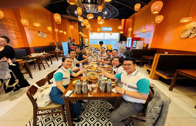 Trên từng bàn tiệc, mọi người đã có cơ hội trò chuyện, chia sẻ chuyên sâu hơn về hành trình kinh doanh, mở rộng mối quan hệ hợp tác trong bầu không khí thoải mái và chân thành - đúng tinh thần của CBC và GIBA: Kết nối – Đồng hành – Phát triển bền vững.