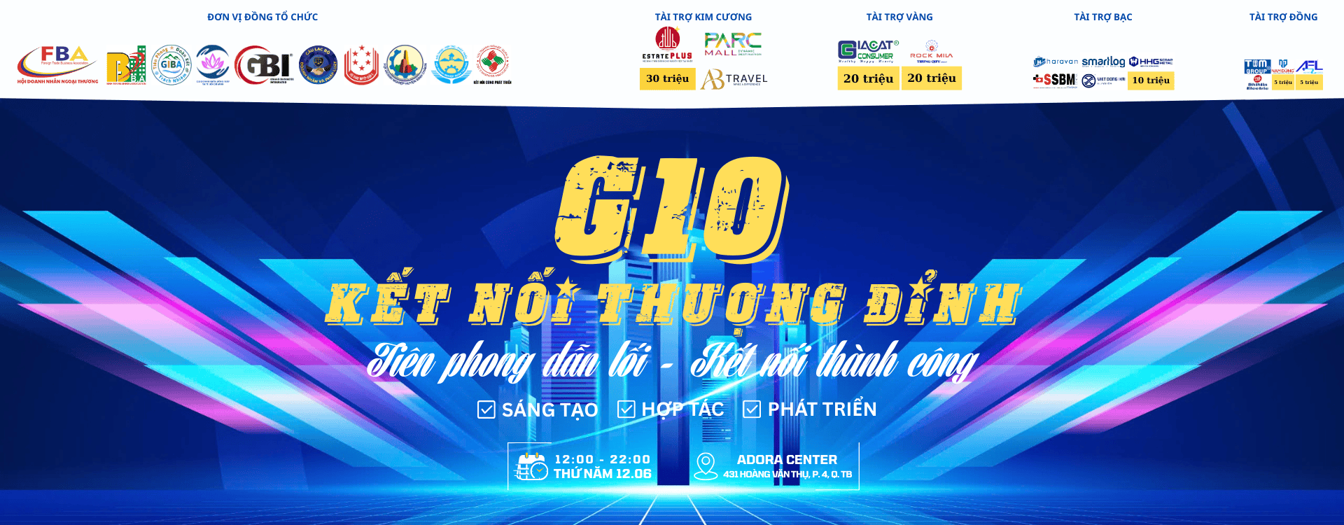Với chủ đề “Tiên phong dẫn lối – Kết nối thành công: Sáng tạo – Hợp tác – Phát triển”, chương trình là sự phối hợp Đồng tổ chức giữa 10 Hội Doanh nghiệp & CLB Doanh nhân: