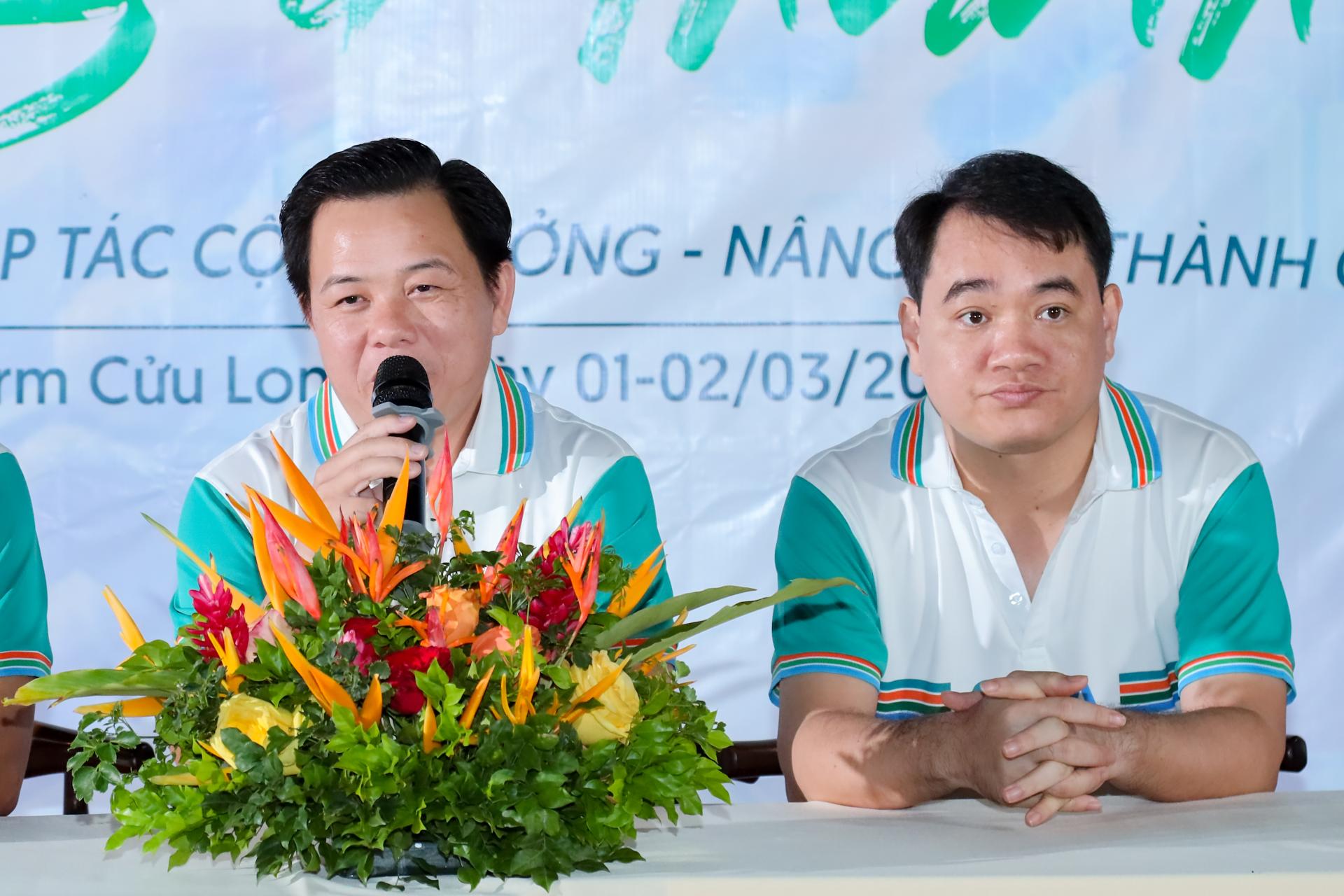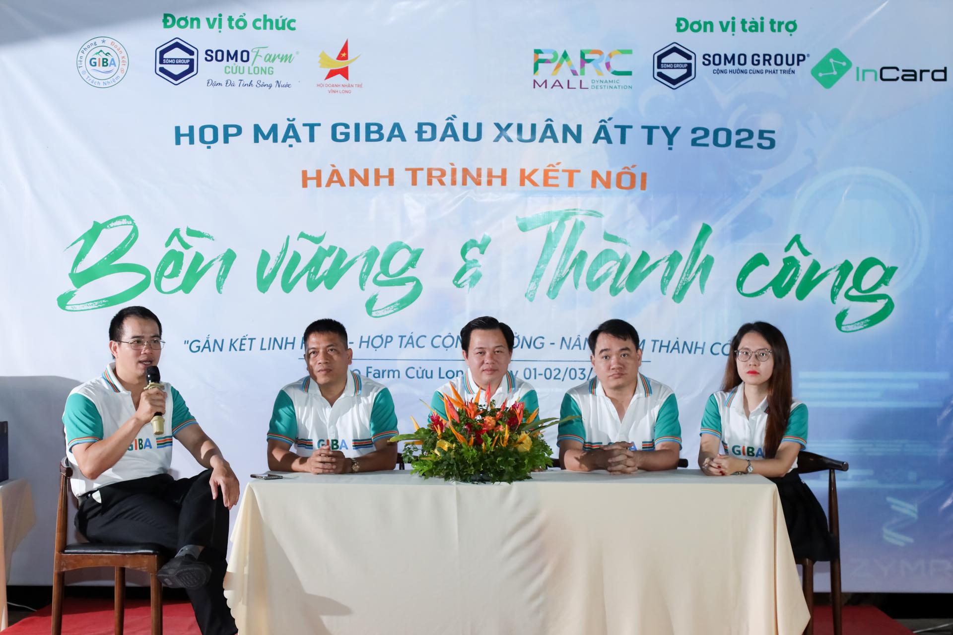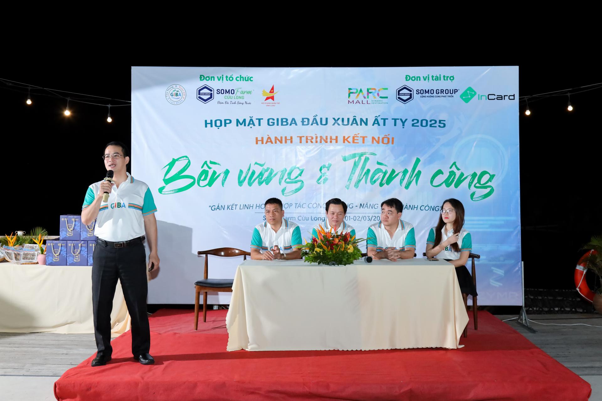 Mở đầu chương trình, ông Nguyễn Tấn Thụ nhấn mạnh tinh thần cống hiến trong cộng đồng doanh nghiệp: “Đừng nghĩ rằng mình gia nhập hội để nhận được gì, hãy nghĩ xem mình có thể đóng góp được những gì.” Theo ông, Hội Doanh nhân không chỉ là nơi giao lưu mà còn là cầu nối giữa doanh nghiệp với lãnh đạo tỉnh, giúp tháo gỡ khó khăn và thúc đẩy sự phát triển bền vững. Ông bày tỏ sự trân trọng đối với chính quyền địa phương: “Tôi rất quý khi hiện tại lãnh đạo tỉnh cũng tạo điều kiện cho các doanh nghiệp phát triển.” Ông cũng nhấn mạnh thêm các Hội Doanh nhân nói chung và GIBA nói riêng sẽ luôn là môi trường kết nối, nơi các doanh nhân cùng nhau hợp tác, phát triển: “Buôn có bạn, bán có phường – hội là nơi để anh em doanh nhân kết nối và hỗ trợ nhau, cùng hợp tác phát triển.”